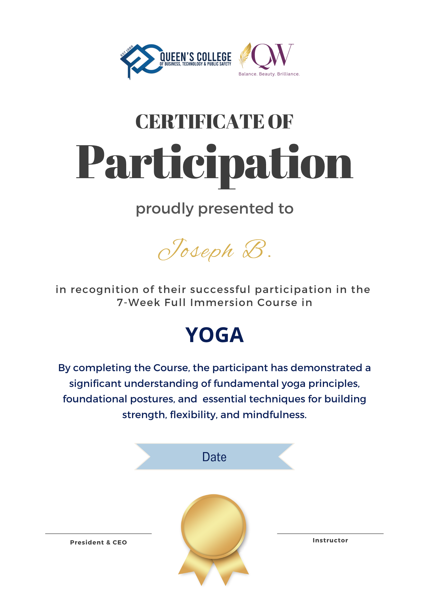 Upon successful completion of the course, you will receive a Certificate of Participation.